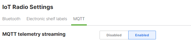 - Select the MQTT Tab and switch "MQTT telemetry streaming" to "Enabled"