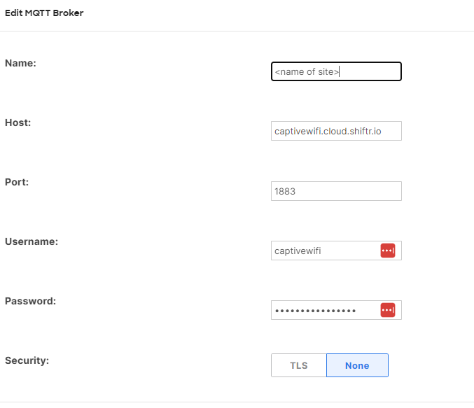 - The data will look similar to the below. Please ensure the port is 1883 and TLS is off.