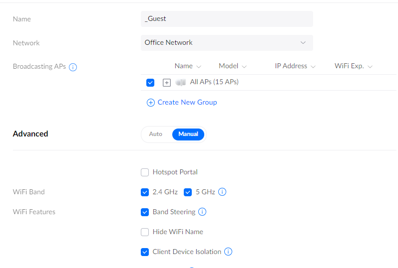 🚨Making this change will provision all APs and cause the WiFi to drop for 30 seconds whilst all wireless APs are provisioning 🚨