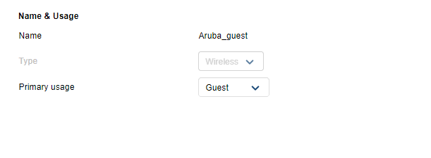 - A configuration dialog box appears. Enter the name (SSID) of your WLAN network and select GUEST in Primary usage. Press Next to continue: