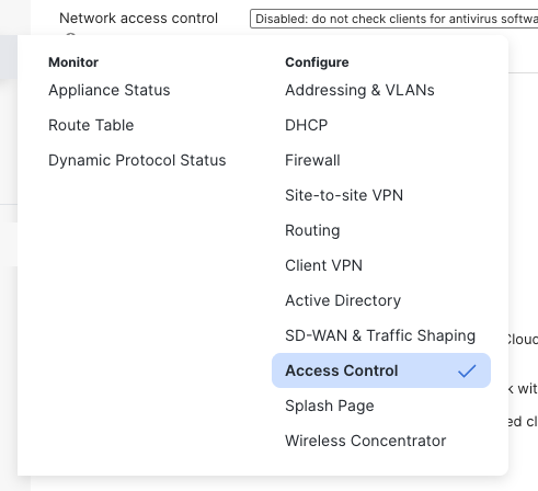 - Go to Security & SD-WAN and choose Access Control