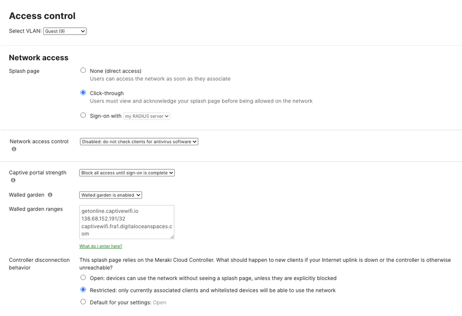 - On the Access Control page select the relevant VLAN