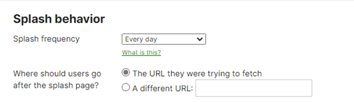 - In Splash Behavior below please choose "A Different URL"